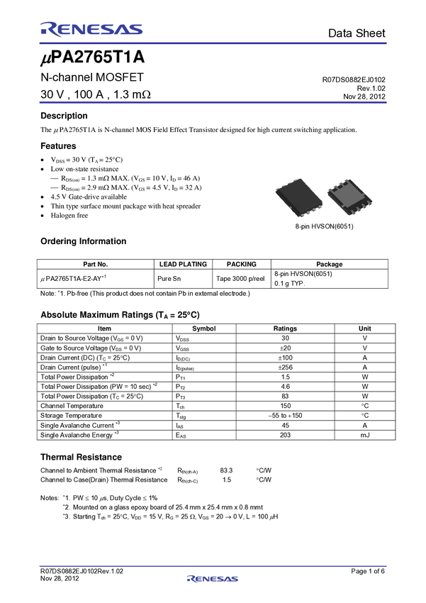 Nch Single Power Mosfet 30V 100A 1.3Mohm 8Pin HVSON (6051)