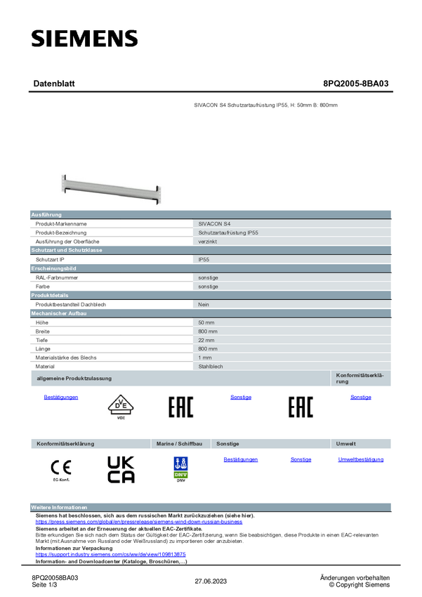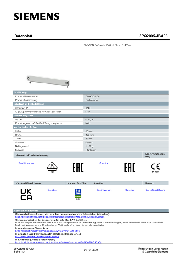 Przesłona Siemens 8PQ2005-4BA03 1 szt.
