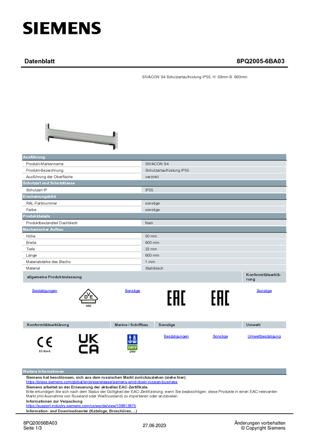 Przesłona Siemens 8PQ2005-6BA04 1 szt.
