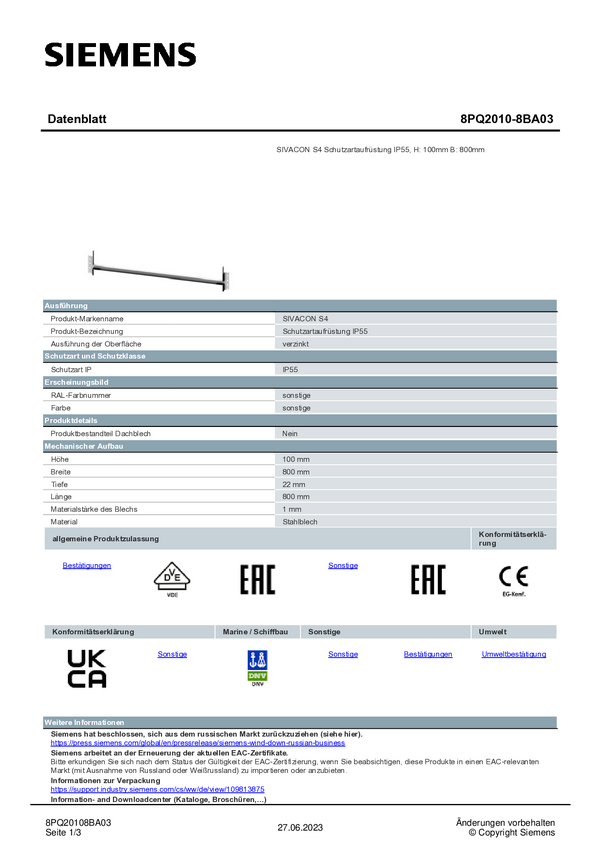 Aktualizacja typu ochrony Siemens 8PQ2010-8BA03 1 szt.