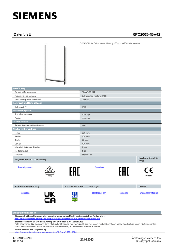 Drzwi półki Siemens 8PQ2065-4BA01 1 szt.
