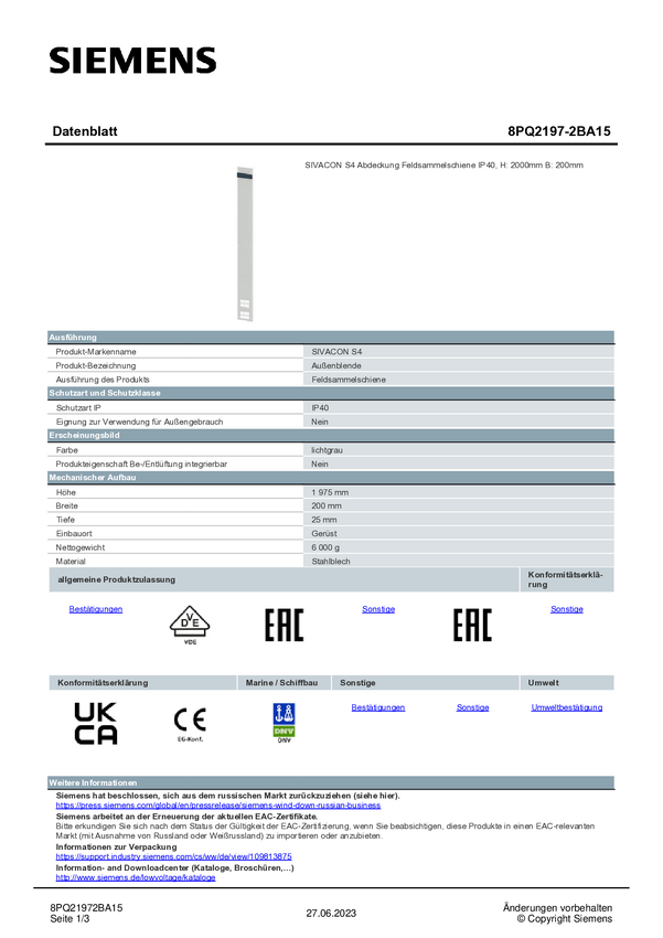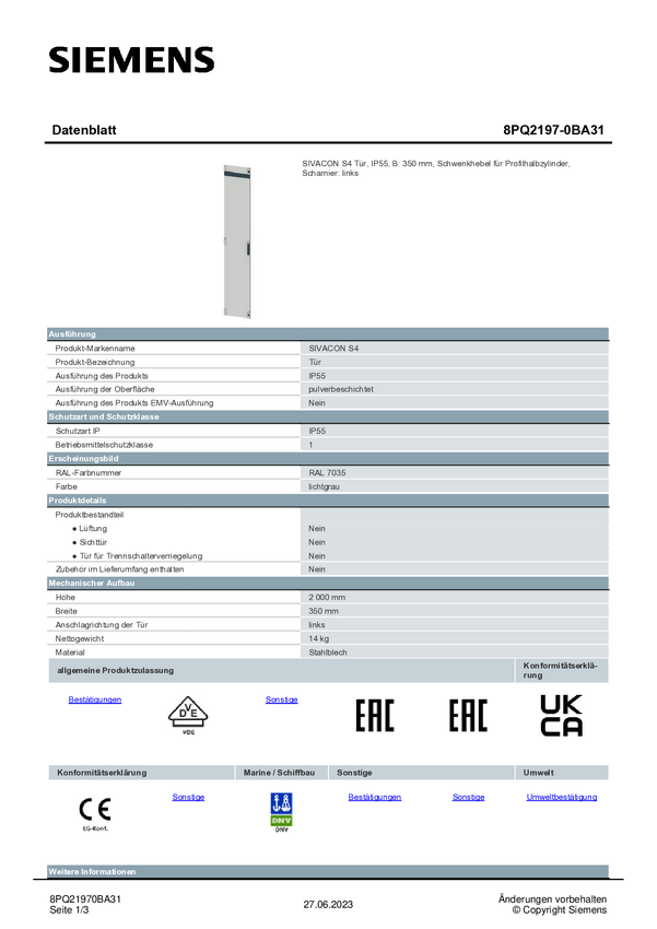 Drzwi Siemens 8PQ2197-0BA31 1 szt.