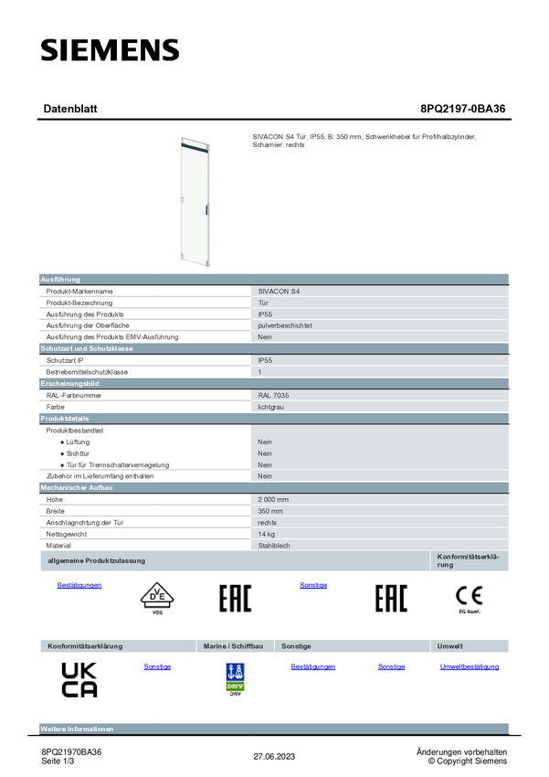 Drzwi Siemens 8PQ2197-0BA36 1 szt.