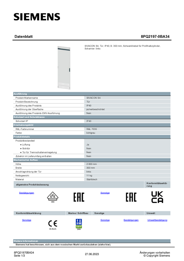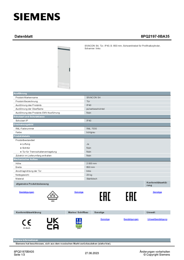 Drzwi Siemens 8PQ2197-0BA35 1 szt.