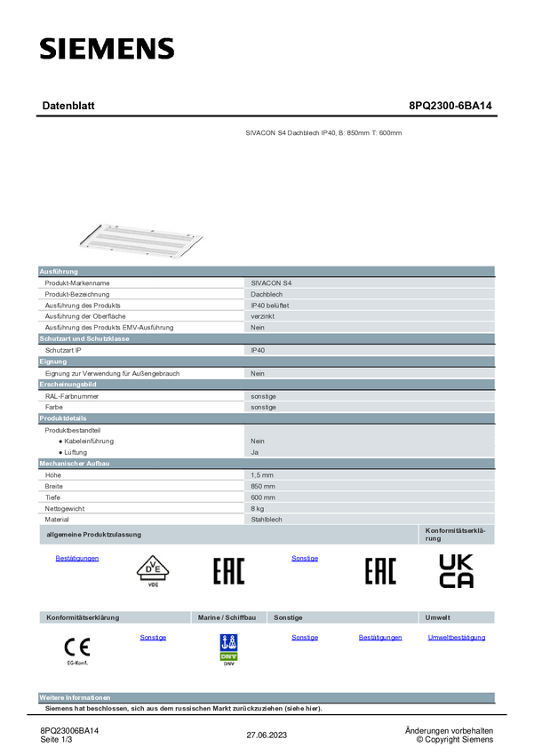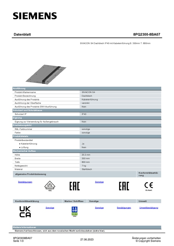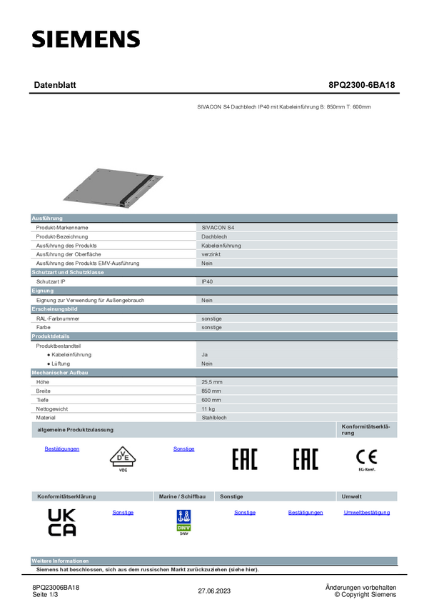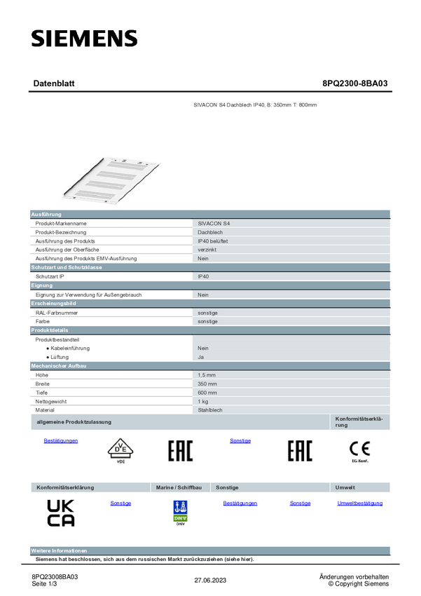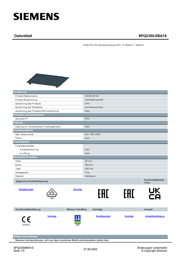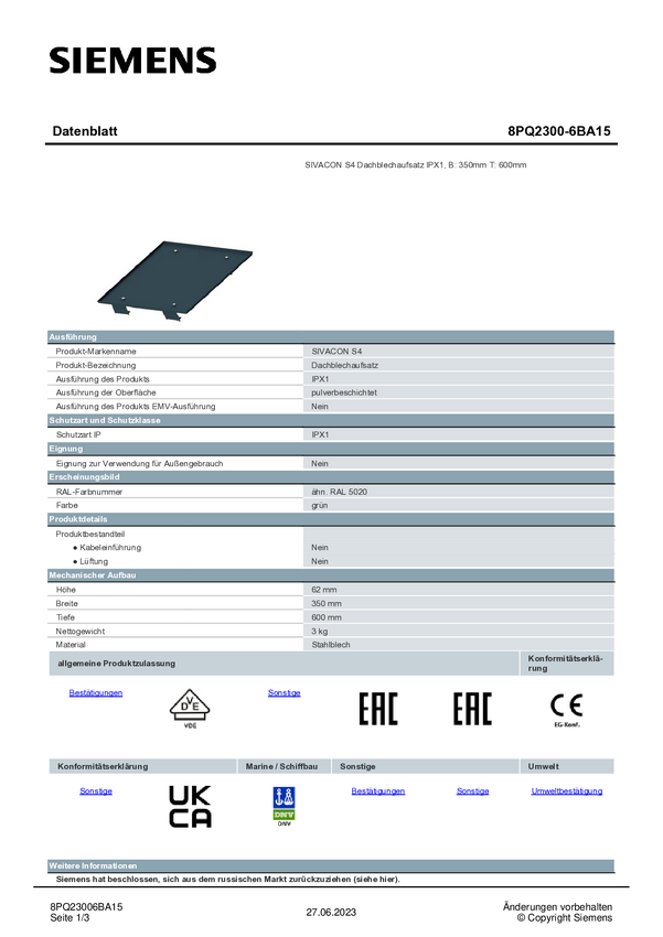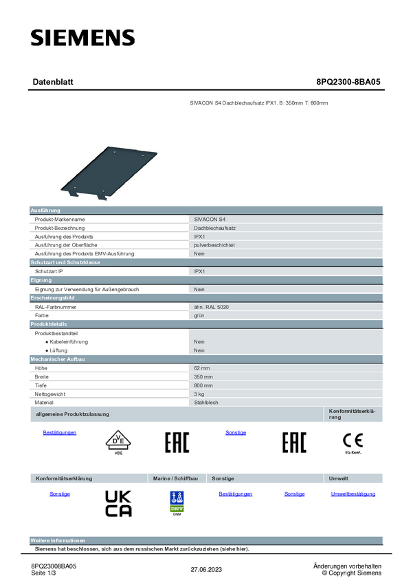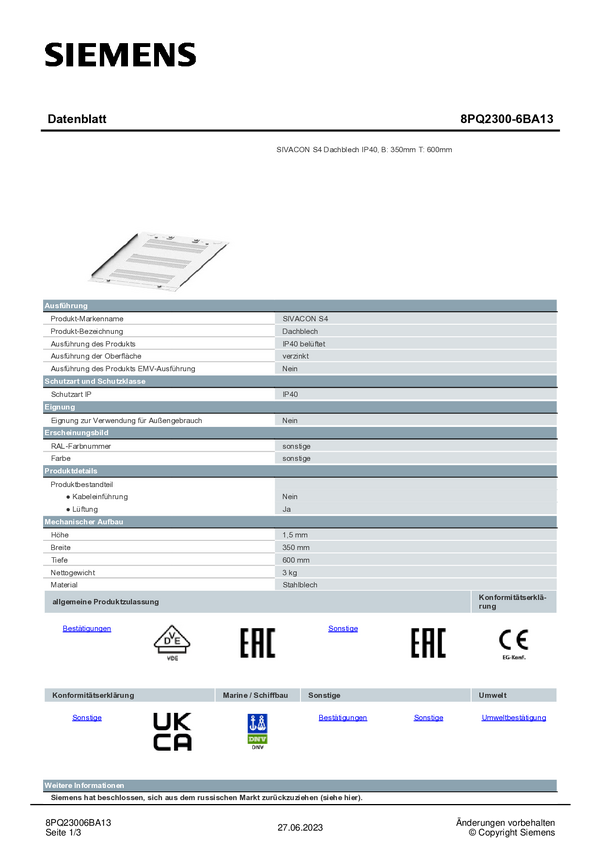 Dach Siemens 8PQ2300-6BA17 1 szt.
