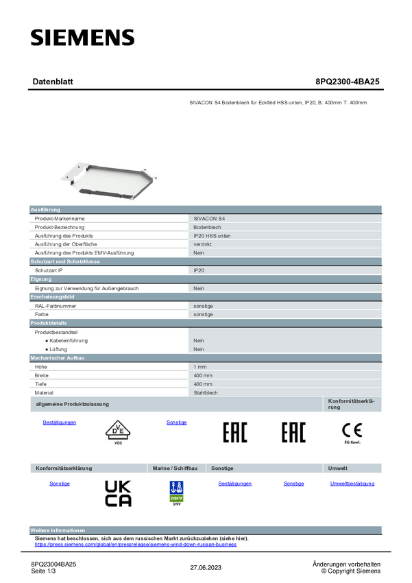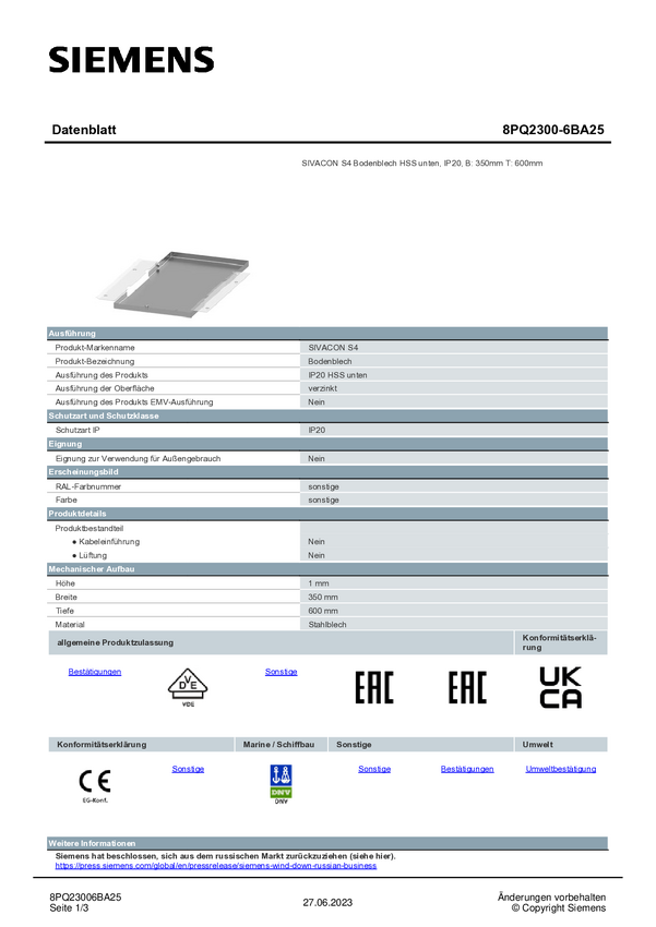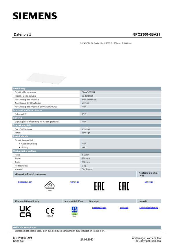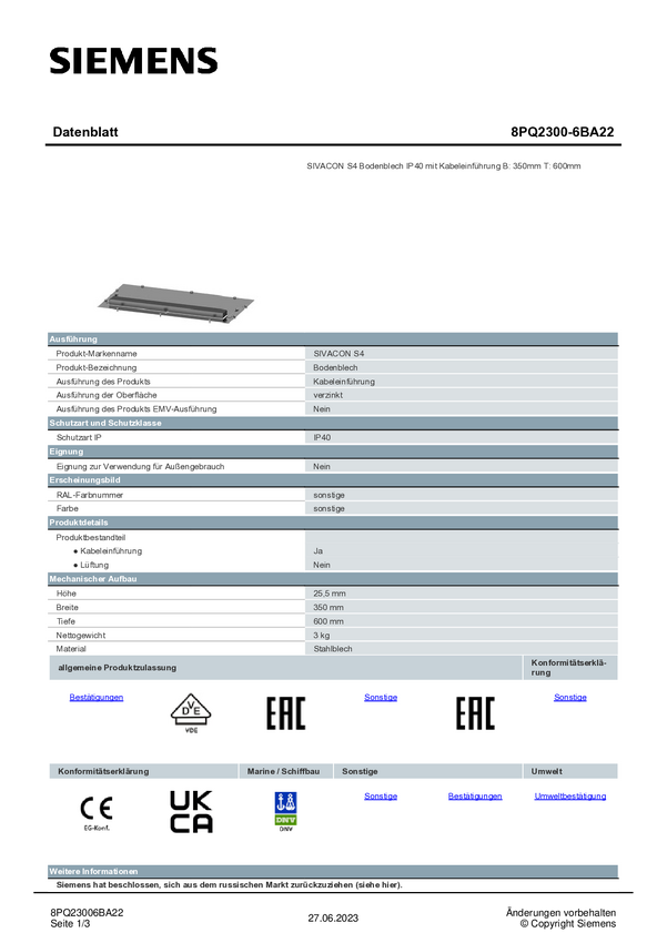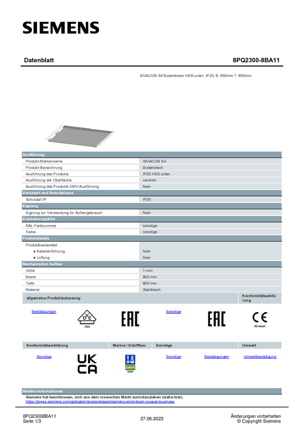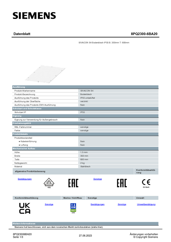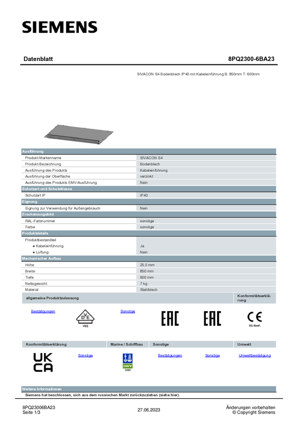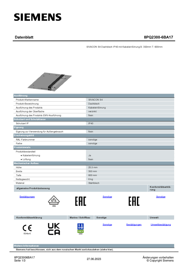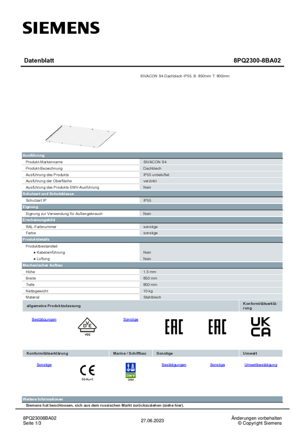 Dach Siemens 8PQ2300-6BA17 1 szt.