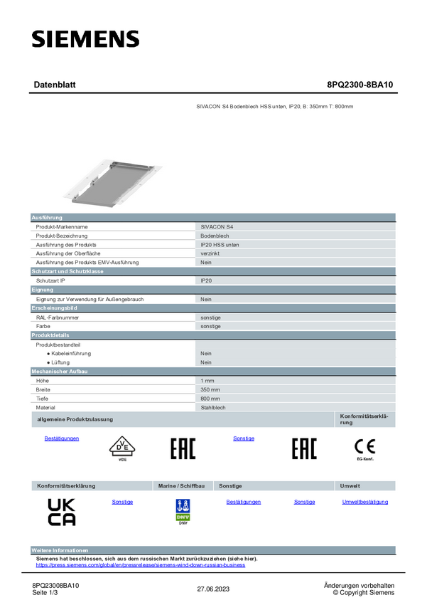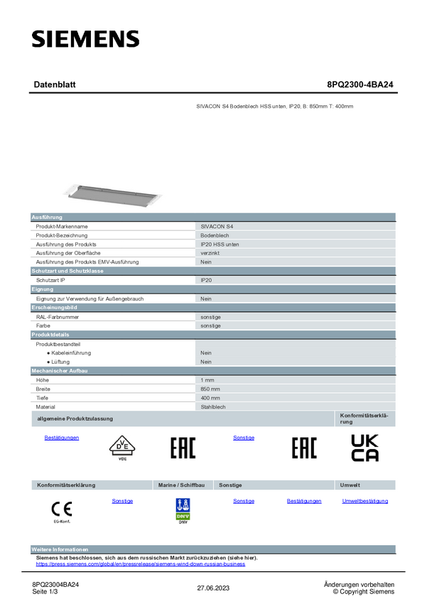 Dach Siemens 8PQ2300-8BA02 1 szt.