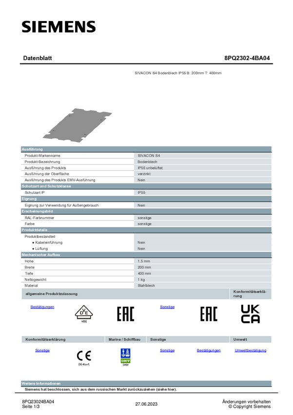 Dach Siemens 8PQ2302-4BA03 1 szt.