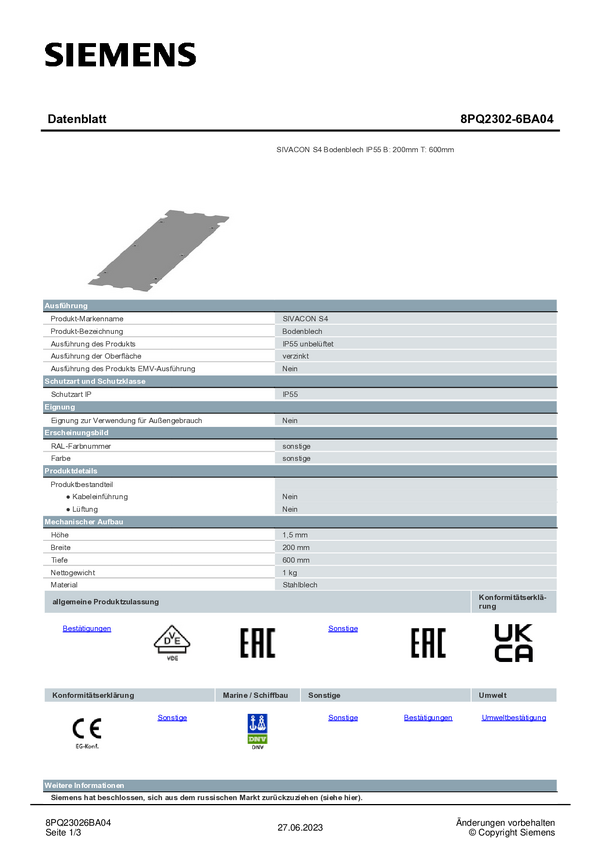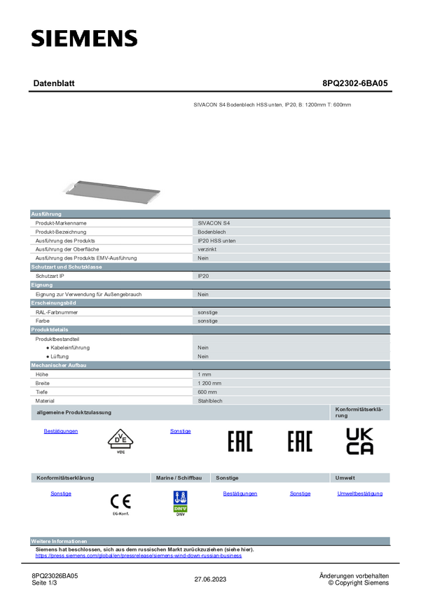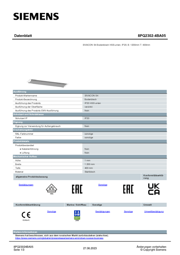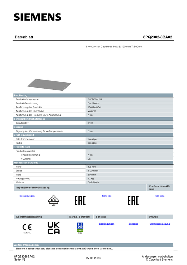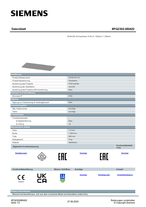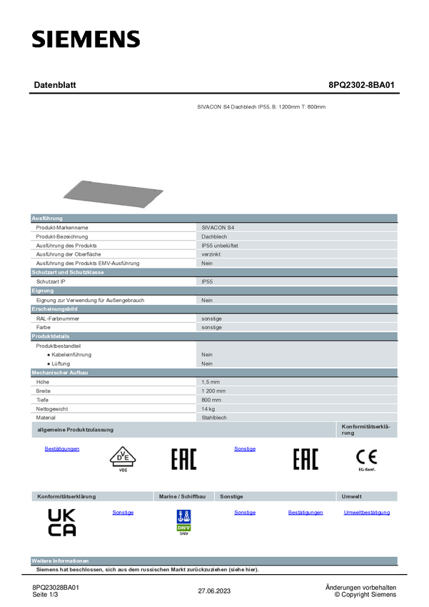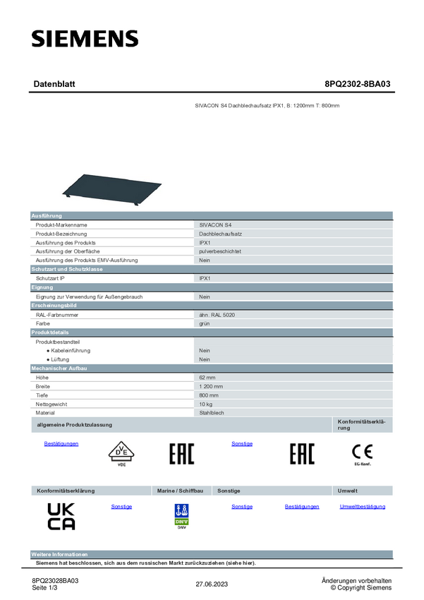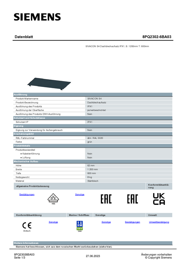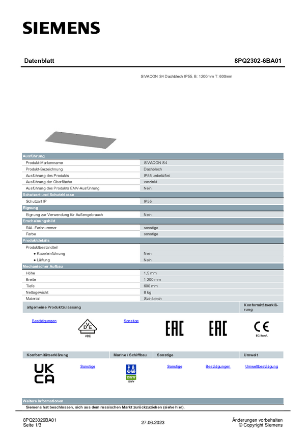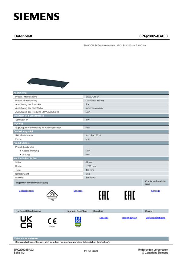 Dach Siemens 8PQ2302-6BA02 1 szt.