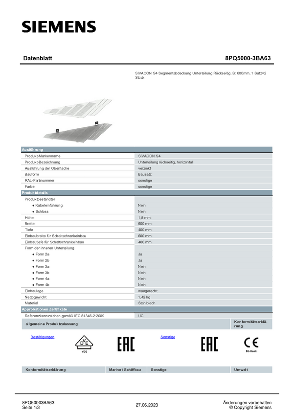Pokrywa Siemens 8PQ5000-3BA63 1 szt.