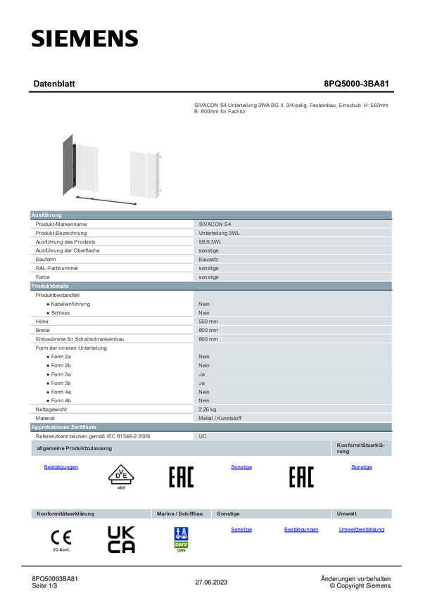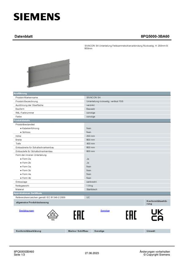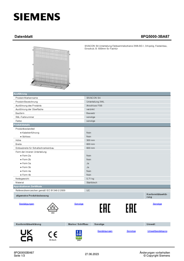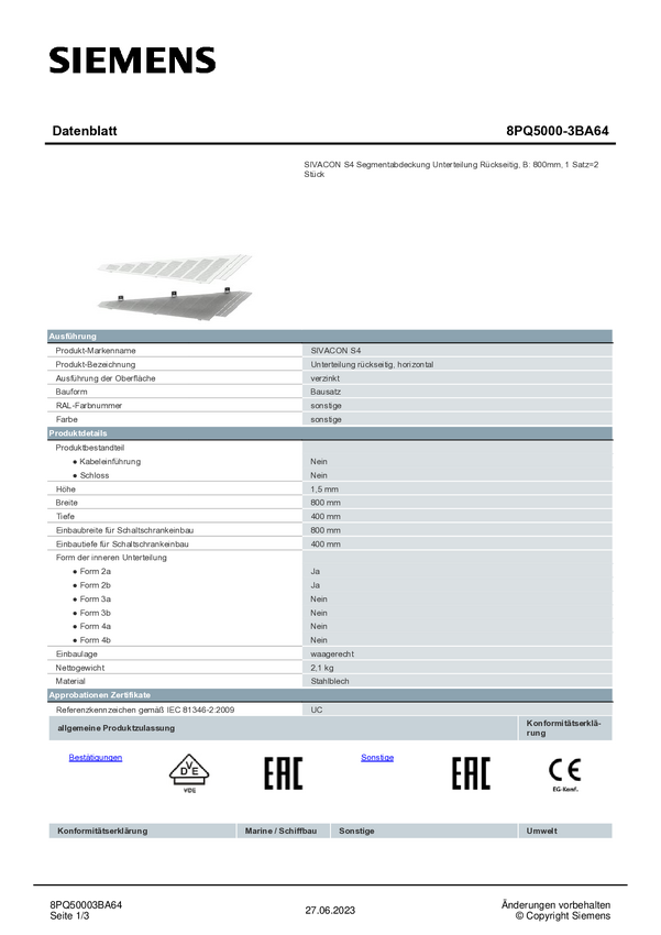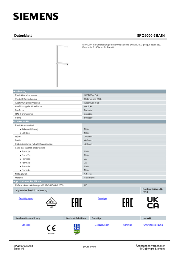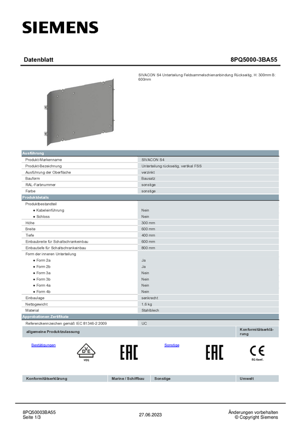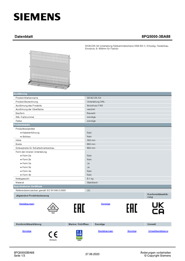 Pooddział Siemens 8PQ5000-3BA81 1 szt.