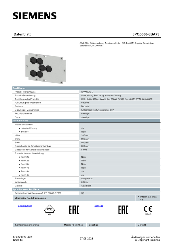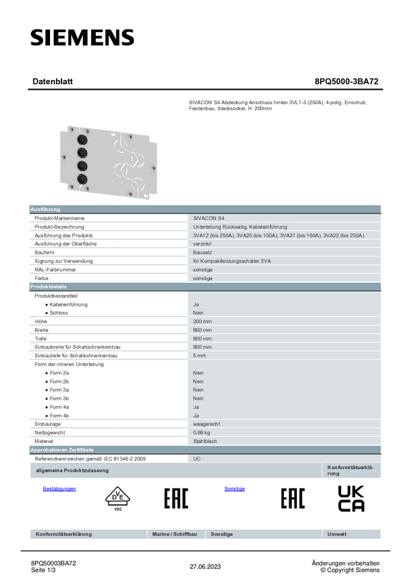 Pokrywa Siemens 8PQ5000-3BA73 1 szt.