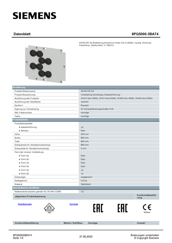 Pokrywa Siemens 8PQ5000-3BA74 1 szt.