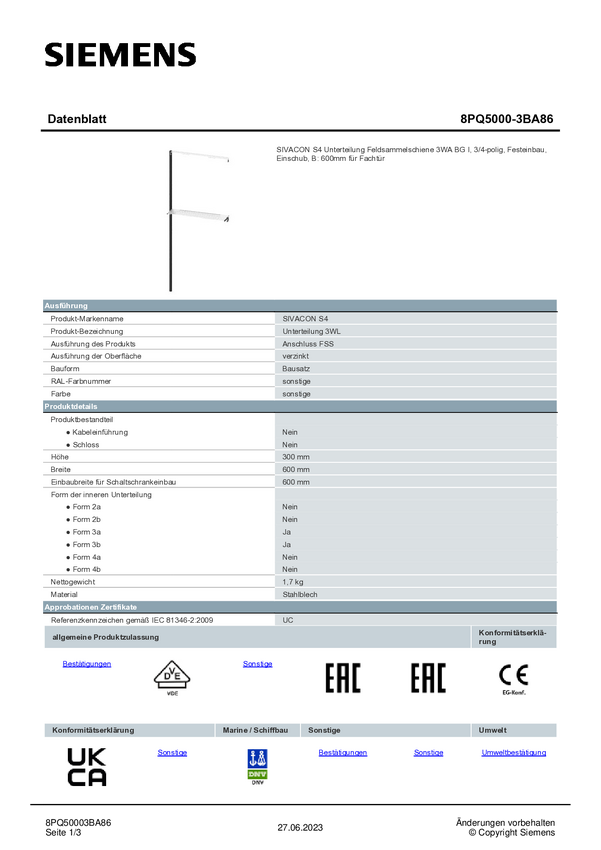 Pooddział Siemens 8PQ5000-3BA86 1 szt.