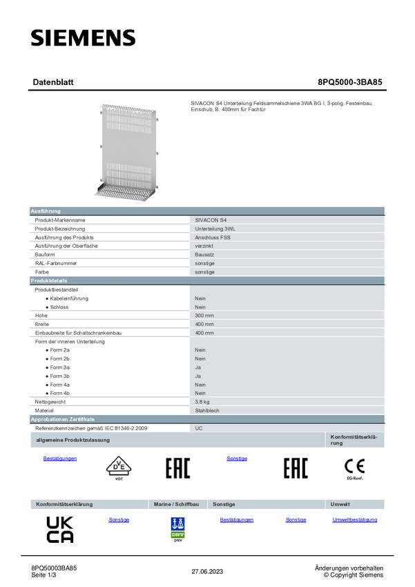 Pooddział Siemens 8PQ5000-3BA85 1 szt.