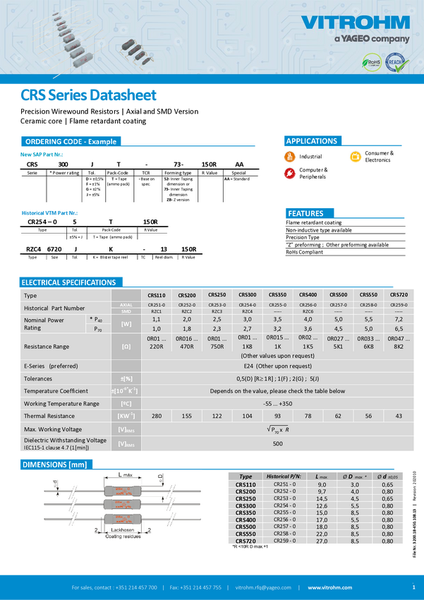 VitrOhm CRS300JT-73-8R2AA Rezystor drutowy 8.2 Ω THT 2.7 W 5 % 1 szt.