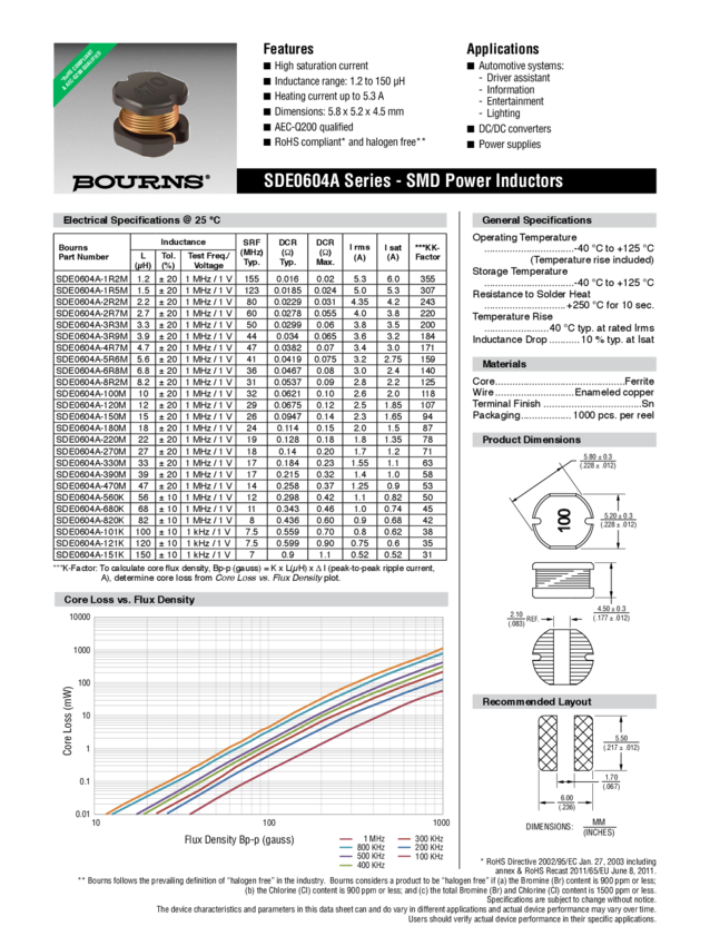 Ind Power Wirewound 1.2mH 10% 1KHz 31Q-Factor Ferrite 210mA T/R