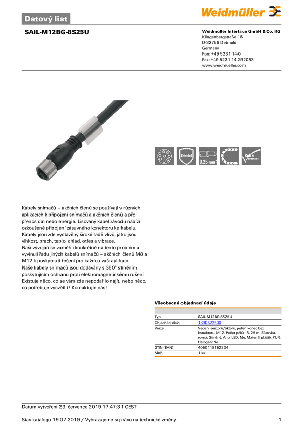 Przewód czujników/elementów wykonawczych Weidmüller SAIL-M12BG-8S25U 1890522500 1 szt.