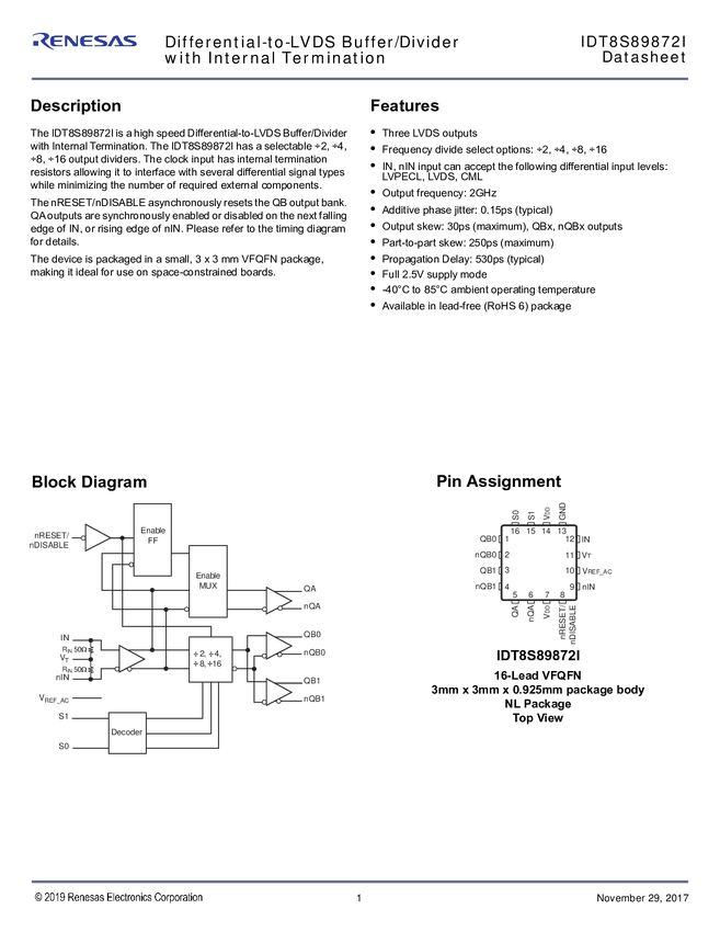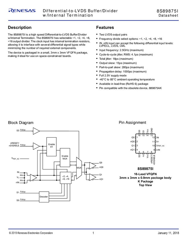 Differential-to-LVDS Buffer/Divider W/Internal Termination
