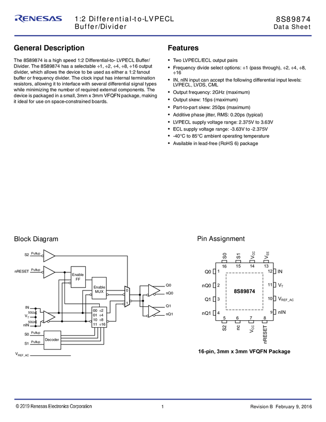 Low Skew,2:1 LVPECL MUX With 1:8 Fanout And Internal Termination