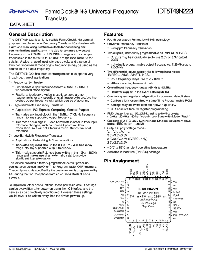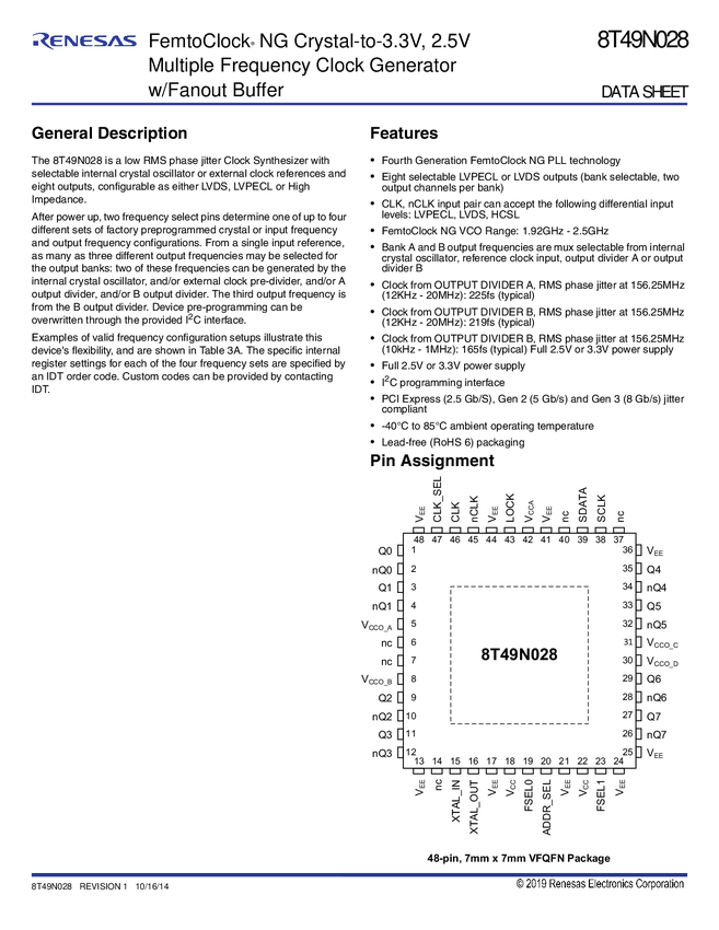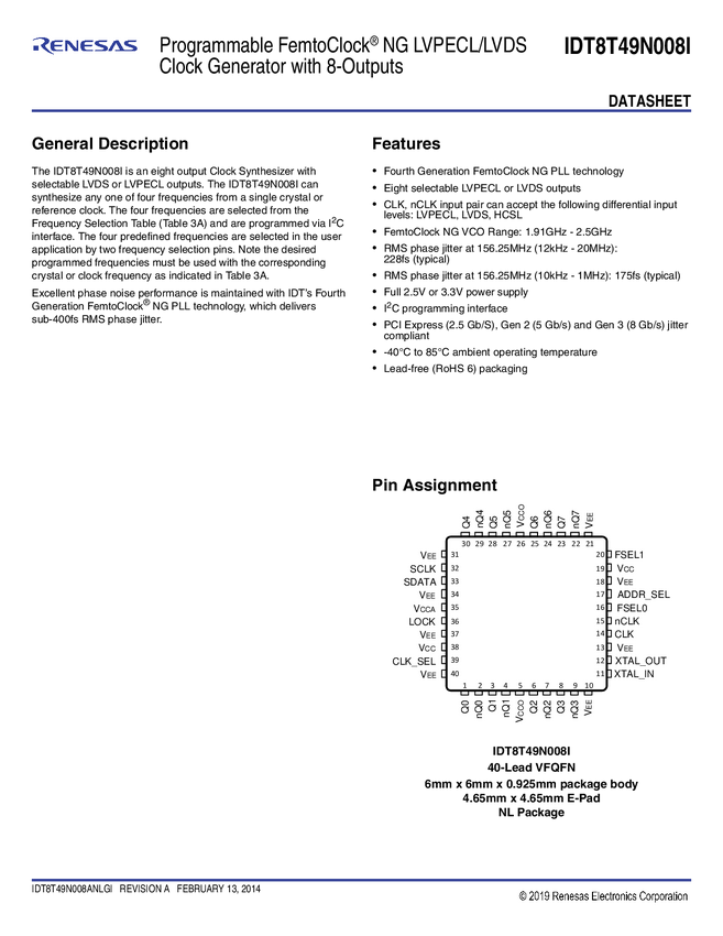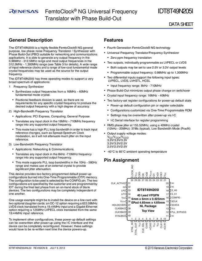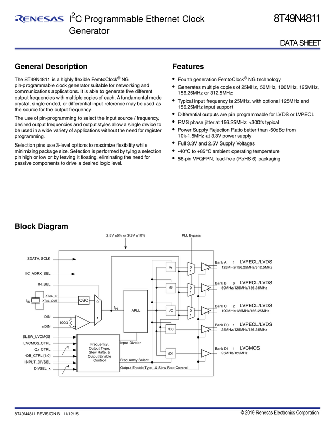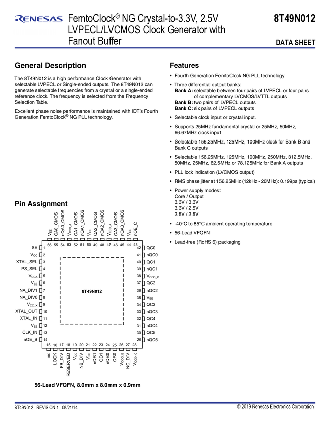 FemtoClock NG Universal Frequency Translator (2-in/1-PLL/8-out)