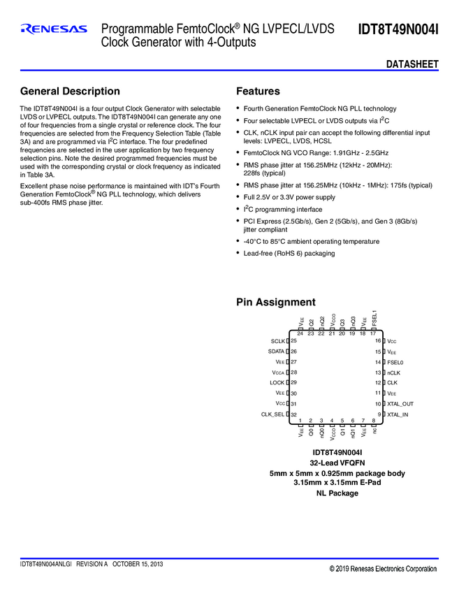 Programmable FemtoClock™ NG LVPECL/LVDS Clock Generator with 4-Outputs