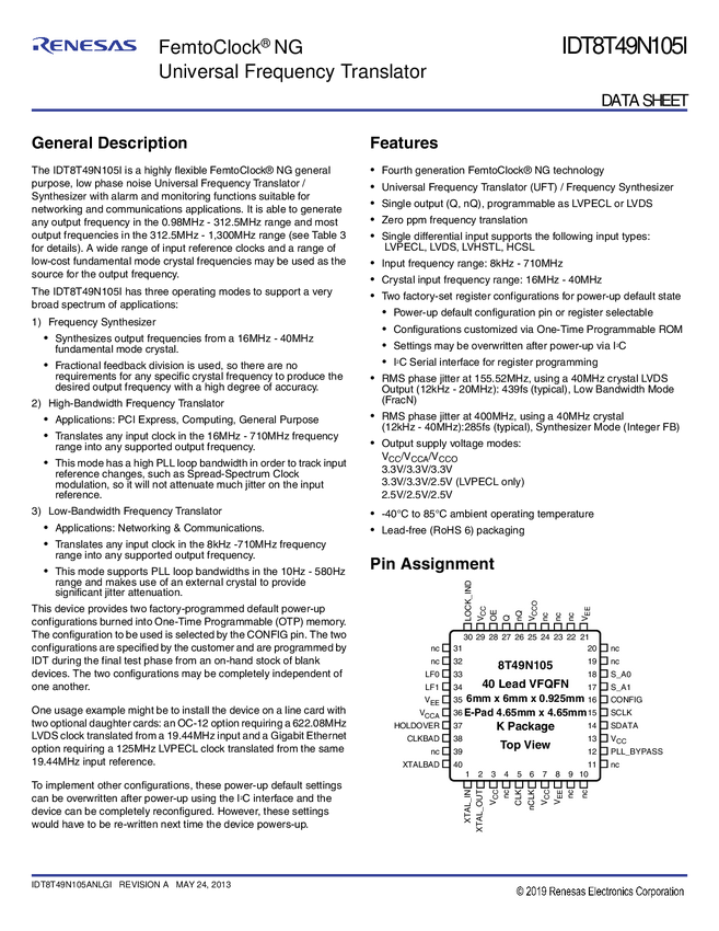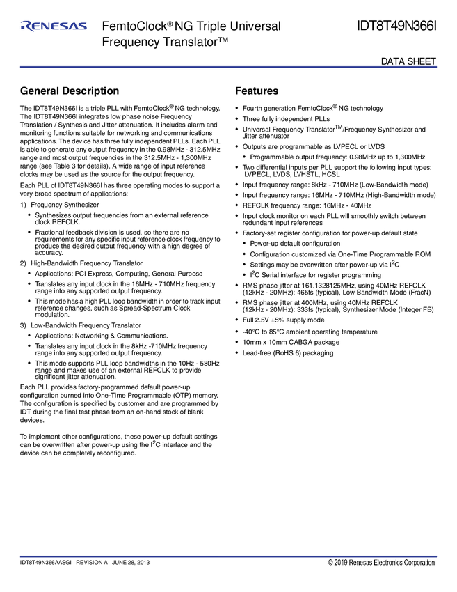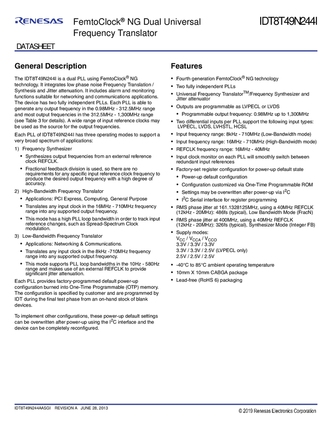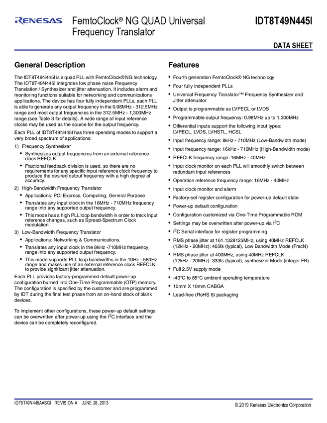 FemtoClock NG Universal Frequency Translator (4-in/2-PLL/8-out)