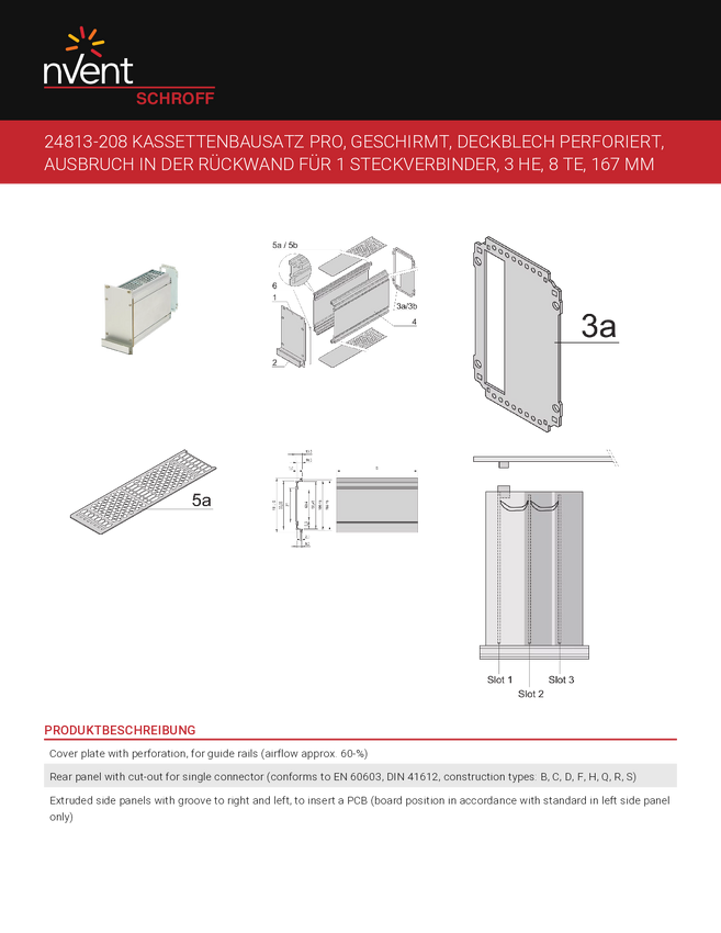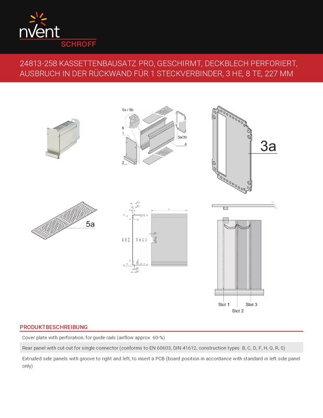 Zestaw kaset SCHROFF PRO 3U, panel przedni ekranowany (uszczelka tekstylna) - KAS S1 OP EMV 3U 8TE 227T