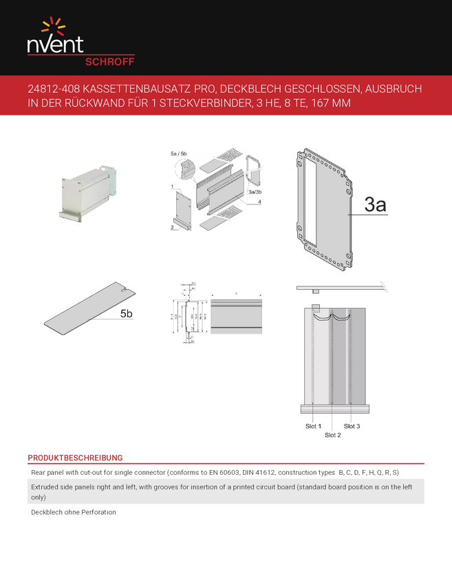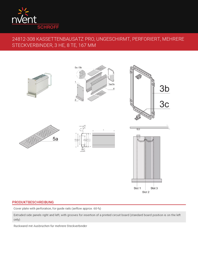 Zestawy kaset SCHROFF PRO 3U, panel przedni nieekranowany - KAS S1 OP 3U 8TE 167T