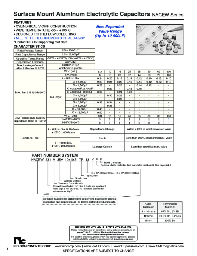 Cap Aluminum 470uF 6.3V 20% (8 X 10.5mm) SMD 0.99 Ohm 210mA 2000h 105°C T/R
