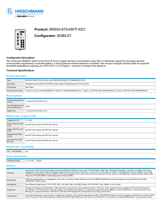 Hirschmann BRS50-8TX/4SFP-EEC Switch przemysłowy Ethernet