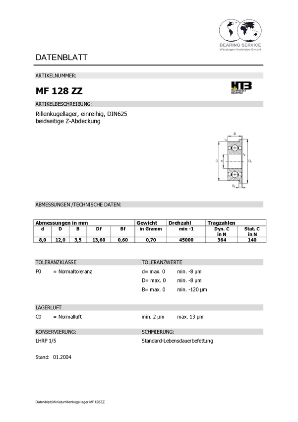 Łożysko kulkowe promieniowe Reely 8X12X3,5 ZZ MIT BUND, Szerokość: 3.5 mm, 1 szt.
