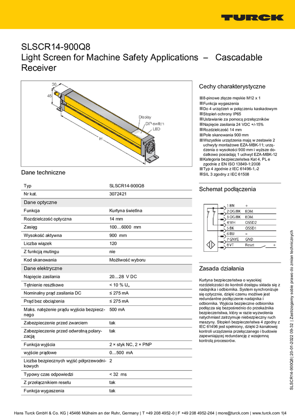 Turck Kurtyna świetlna SLSR14-900Q8 Wysokość ochronna 900 mm
