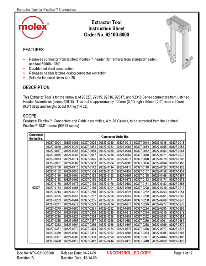 Extraction Tool for 90327, 92315, 92316, 92317 and 92318 Series Connectors