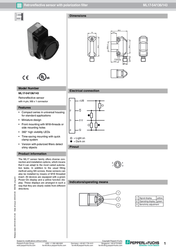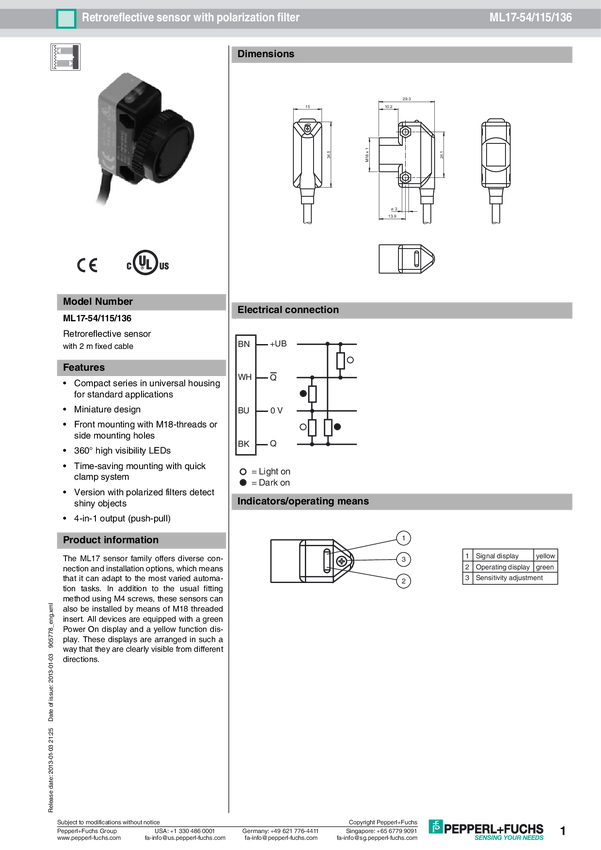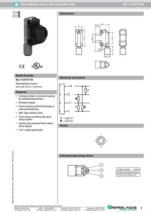 Czujnik fotoelektryczny Pepperl+Fuchs ML17-54/73/136 905779 1 szt.