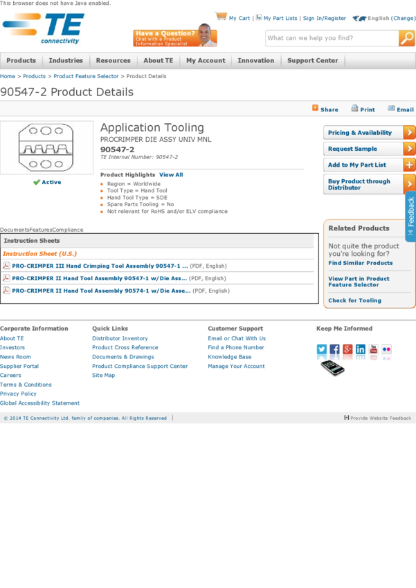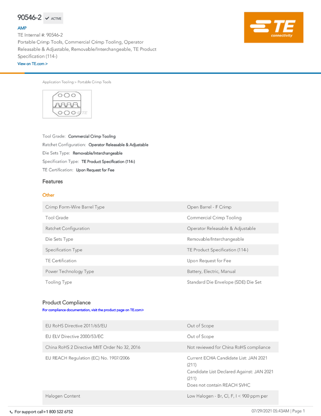 TE Connectivity TE AMP SDE Commercial Tools 90546-2