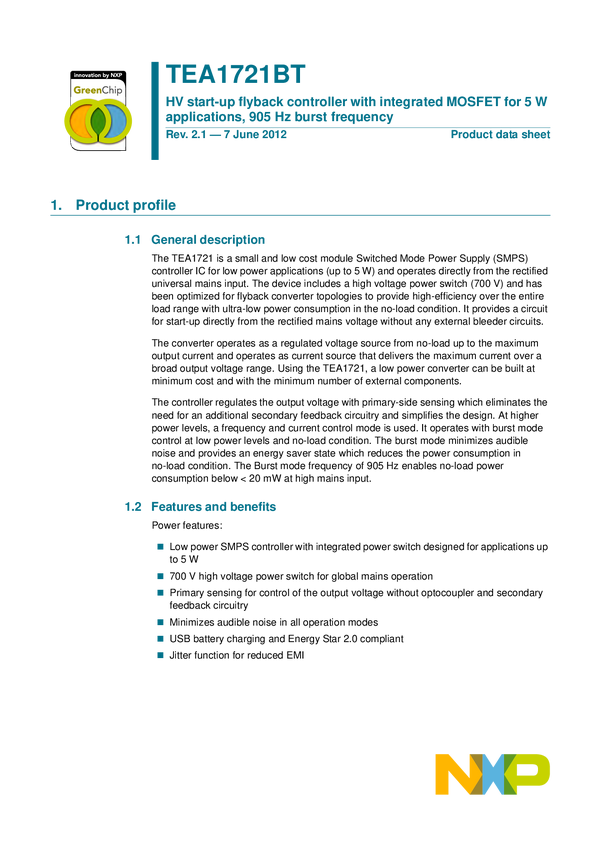 HV Start-up Flyback Controller with Integrated MOSFET for 5 W Applications, F~Burst = 905 Hz