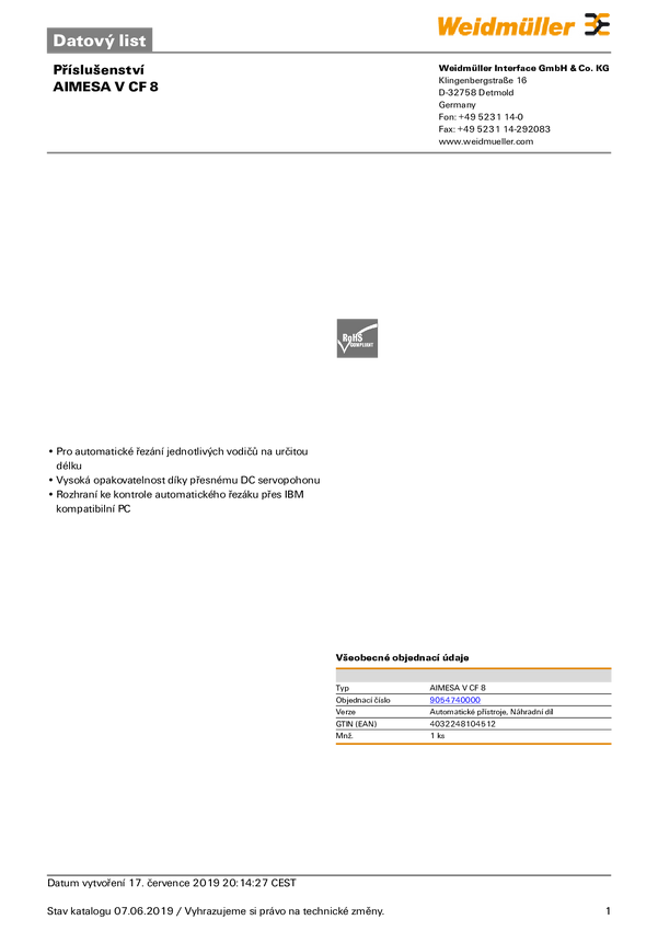 Weidmüller AIMESA V CF 8 9054740000 Ostrze zapasowe do ściągacza izolacji