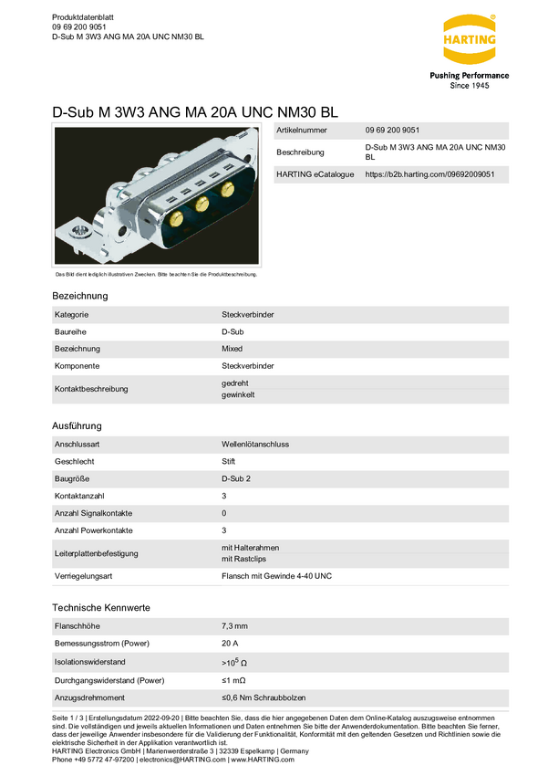 Harting 09 69 200 9051 09692009051 Złącze męskie Ilość styków: 3 lutowane 1 szt.
