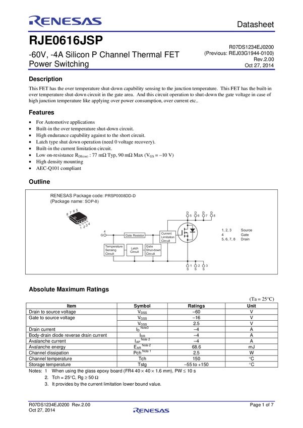 Pch Thermal FET -60V -4A 90mohm SOP-8 / SOIC-8