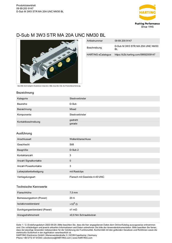 Harting 09692009147 Złącze męskie 09 69 200 9147, styki: 3, 1 szt.