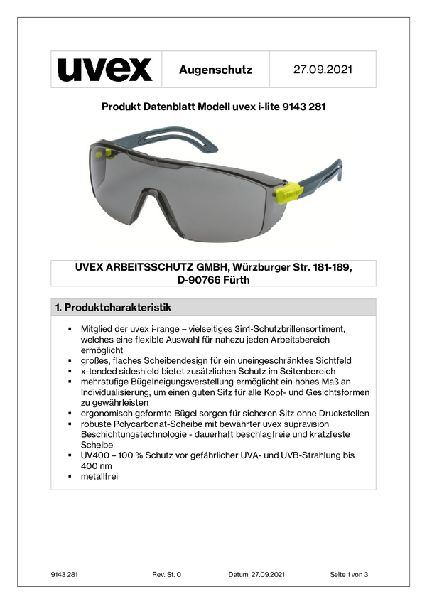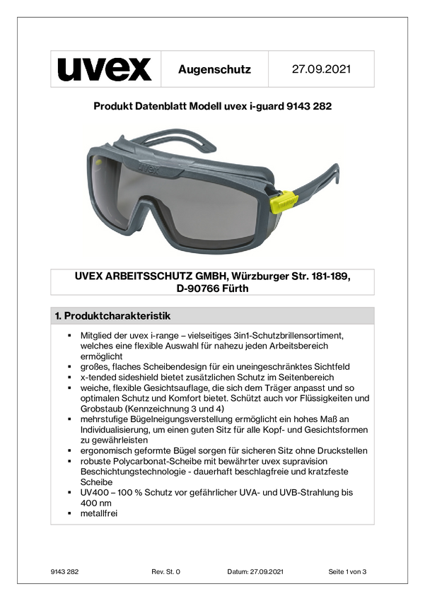 uvex i-guard 9143282 Okulary ochronne szary, żółty