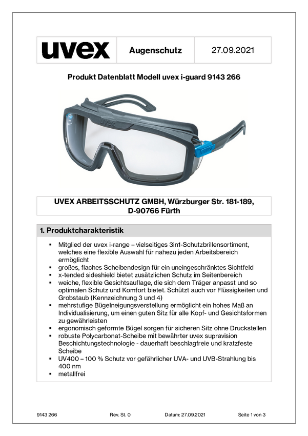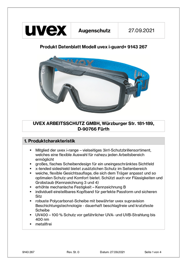 uvex i-guard 9143266 Okulary ochronne szary, niebieski