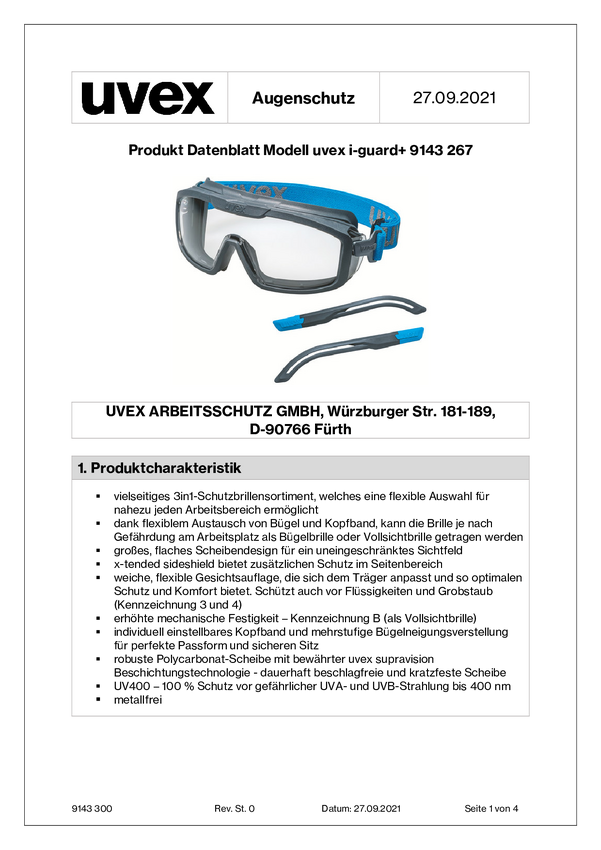 uvex i-guard+ 9143300 Pełne okulary ochronne szary, niebieski