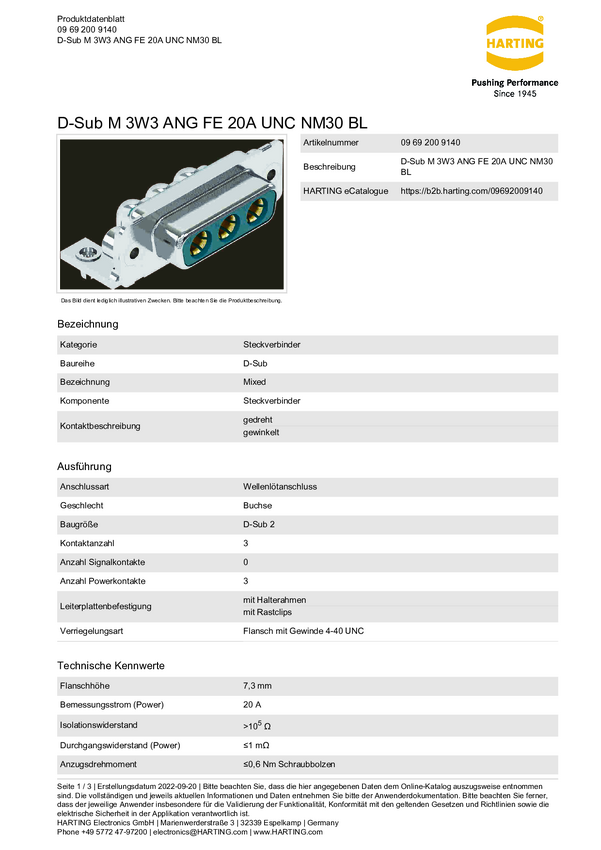 Harting 09692009140 Złącze męskie 09 69 200 9140, styki: 3, 1 szt.