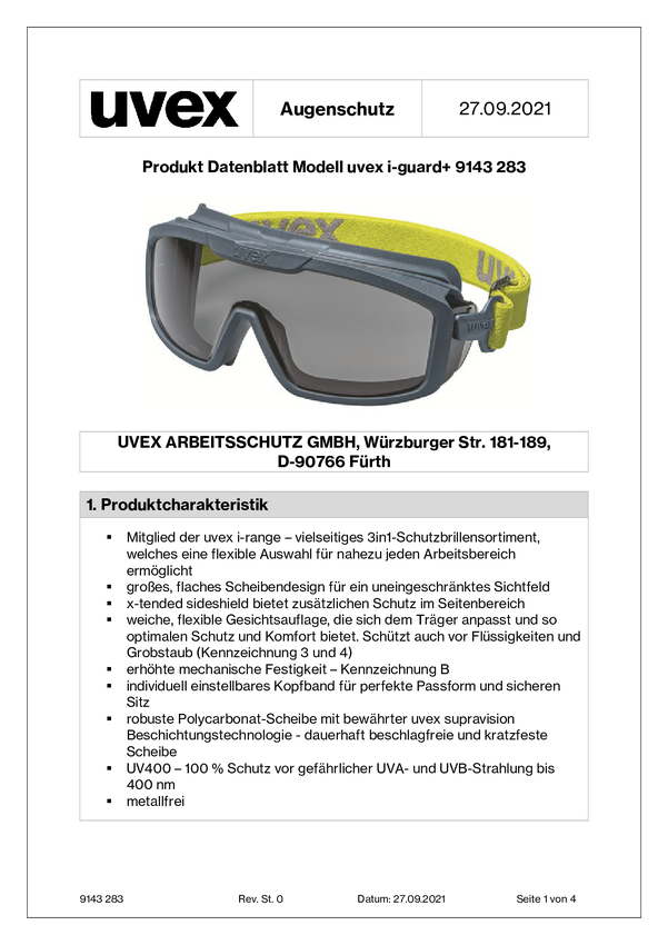 uvex i-guard+ 9143283 Pełne okulary ochronne szary, żółty