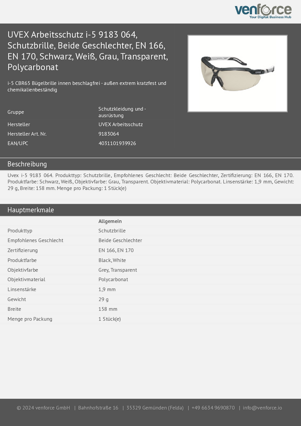 uvex i-5 9183064 Okulary ochronne biały, czarny