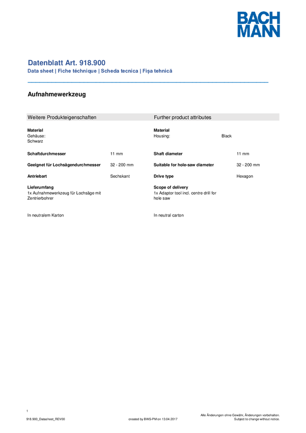 Uchwyt do otwornicy Bachmann 918.900 1 szt.