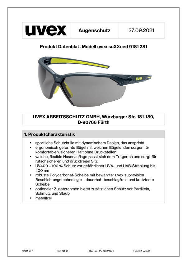 uvex suXXeed 9181281 Okulary ochronne szary, żółty