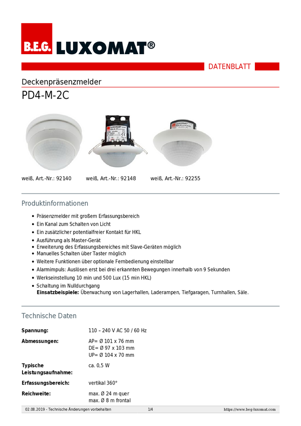 Czujnik obecności B.E.G. Brück 92140 360 ° IP54 biały